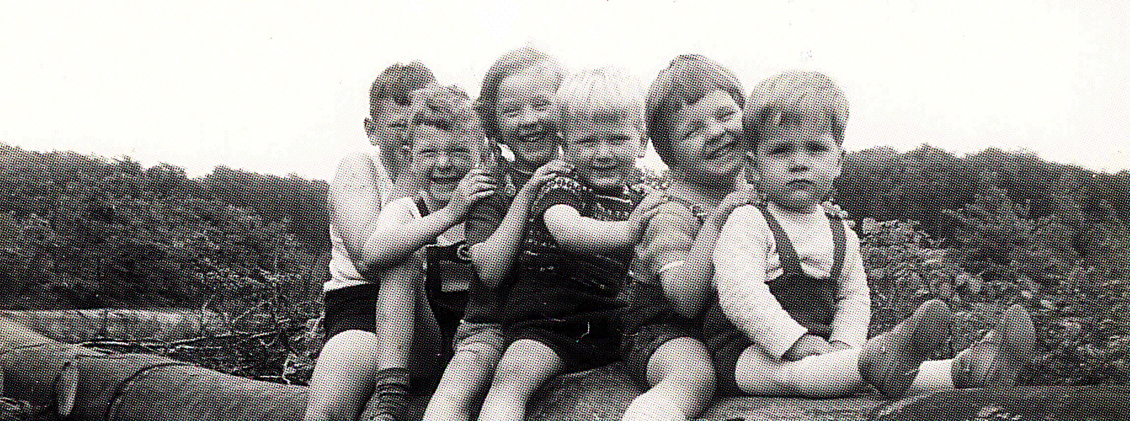 Das Foto zeigt übrigens die gesammelte Verwandtschaft dritten Grades: Cousinen, Cousins, Schwester und mich (die kleine Bratzbacke ganz vorne).